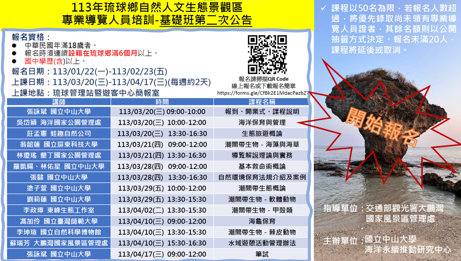 113年琉球鄉自然人文生態景觀區 專業導覽人員培訓 開跑了!